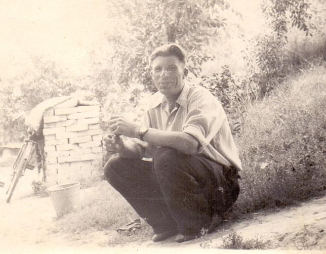 Михняк Іван Кононович біля своєї хати з видом на Дніпро. З родинного архіву Тамари Михняк.
