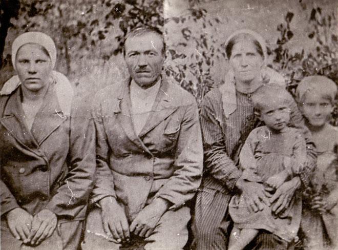 Красюк Захарій Пантелеймонович з Дружиною Ганною Андріївною та дочками Галиною і Фросею. Близько 1940 р.