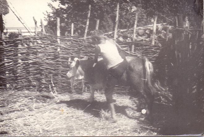 Бригадир В.П.Воронецький оглядає сінокіс на Острові. Близько 1960 р. Фото Миколи Михняка