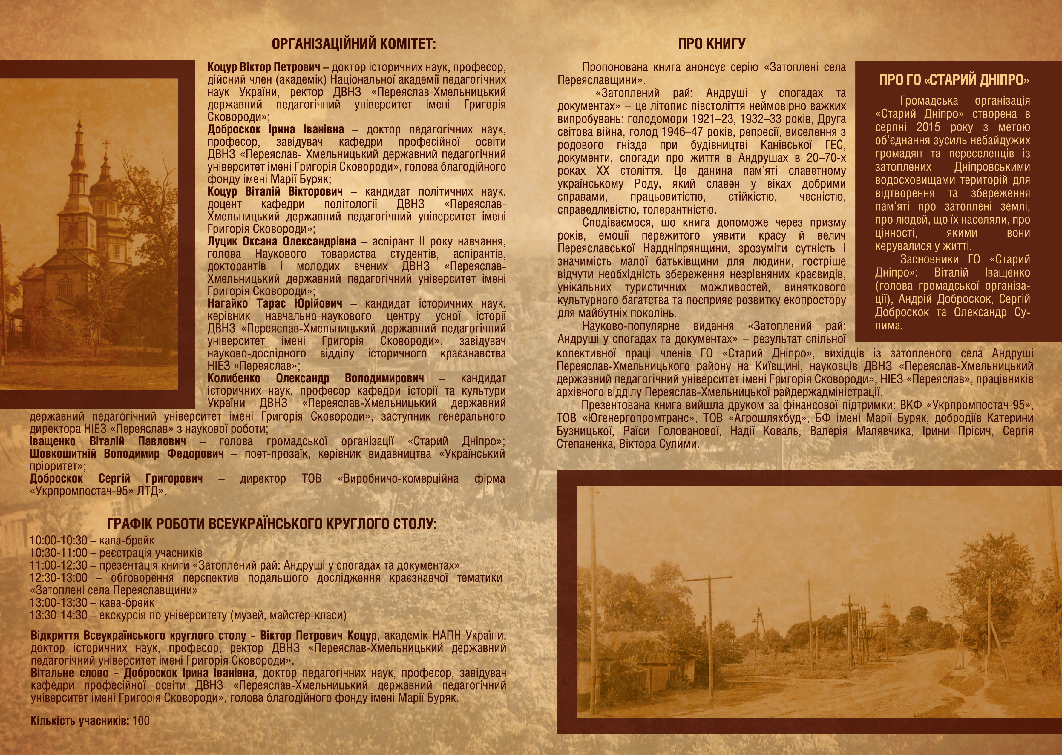 ВСЕУКРАЇНСЬКИЙ КРУГЛИЙ СТІЛ: «ЗАТОПЛЕНІ СЕЛА ПЕРЕЯСЛАВЩИНИ: КРАЄЗНАВЧІ РОЗВІДКИ» »