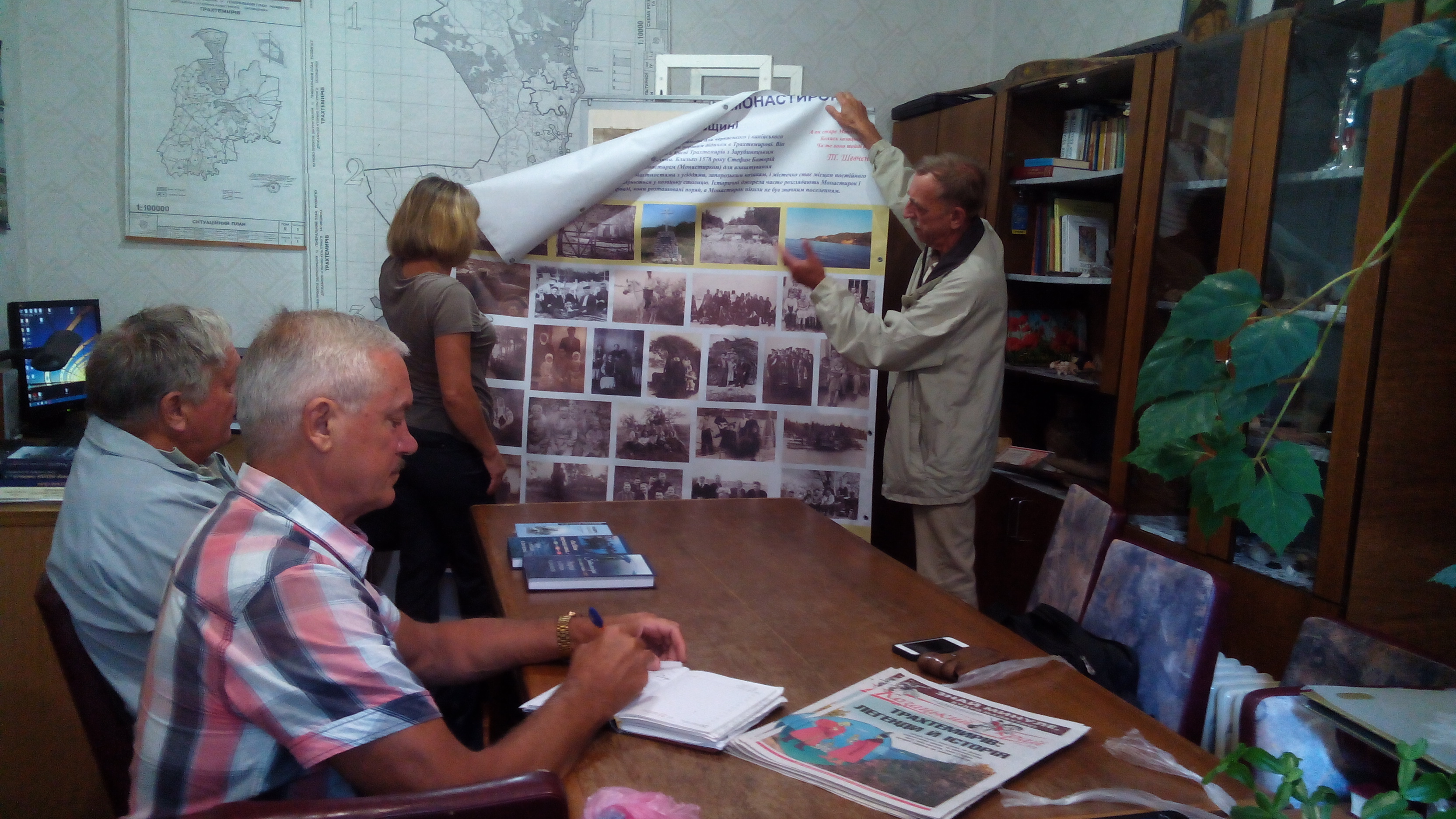 Актив громадської організації «Старий Дніпро» 6 серпня провів своє традиційне щотижневе оперативне засідання в Каневі в офісі Державного історико-культурного заповідника «Трахтемирів». Це викликано тим, що зараз триває активна робота над написанням третьої книги серії «Затоплені села Переяславщини» про колишні населені пункти Трахтемирів і Монастирок, а оскільки їх територією в науково-дослідному плані зараз опікується саме цей заповідник, тож і виникла можливість залучити до збору матеріалів для книги і його науковців.